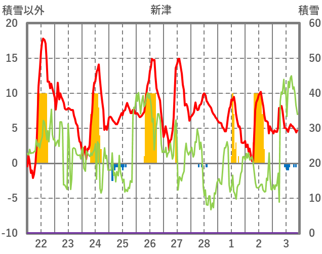 | 日 | 時 | 気温 | 降水 | 風向/風速 | 日照 | 積雪 | 降雪 |
