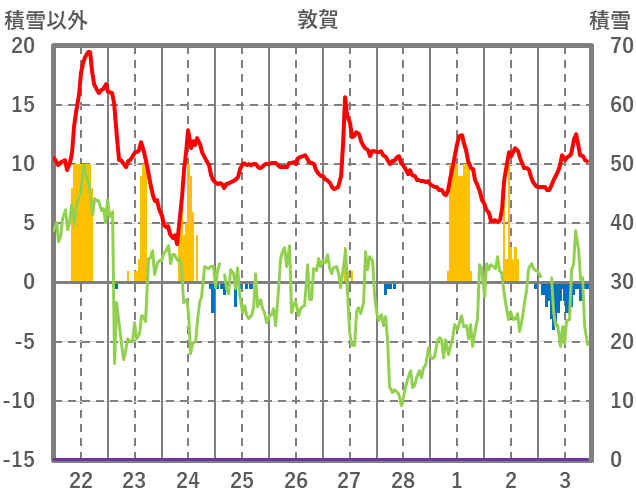 | 日 | 時 | 気温 | 降水 | 風向/風速 | 日照 | 積雪 | 降雪 |
