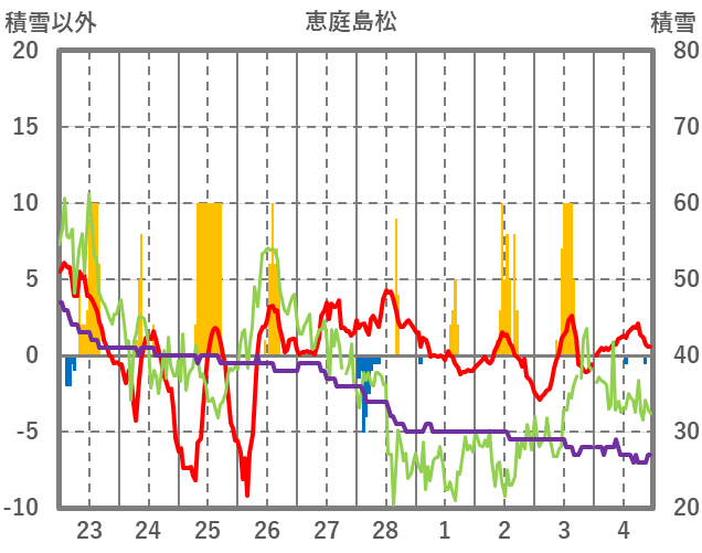 | 日 | 時 | 気温 | 降水 | 風向/風速 | 日照 | 積雪 | 降雪 |
