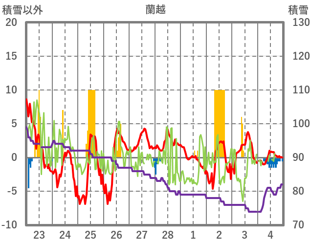 | 日 | 時 | 気温 | 降水 | 風向/風速 | 日照 | 積雪 | 降雪 |