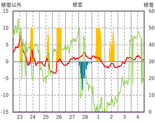 | 日 | 時 | 気温 | 降水 | 風向/風速 | 日照 | 積雪 | 降雪 |