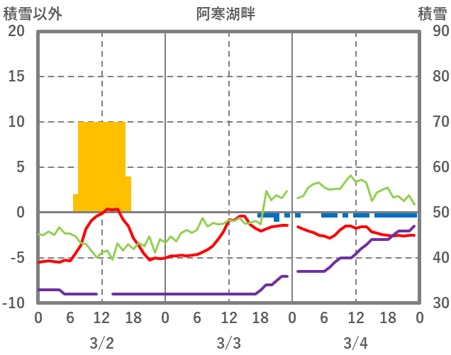 | 日 | 時 | 気温 | 降水 | 風向/風速 | 日照 | 積雪 | 降雪 |
