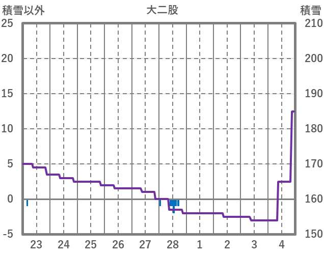 | 日 | 時 | 気温 | 降水 | 風向/風速 | 日照 | 積雪 | 降雪 |