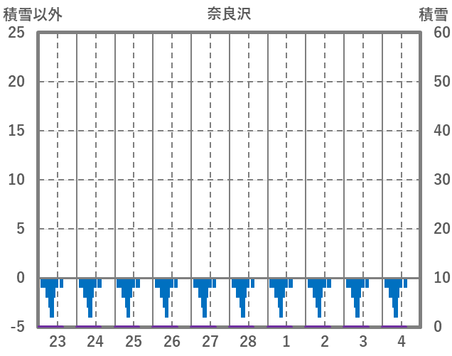 | 日 | 時 | 気温 | 降水 | 風向/風速 | 日照 | 積雪 | 降雪 |