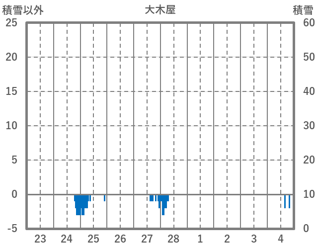 | 日 | 時 | 気温 | 降水 | 風向/風速 | 日照 | 積雪 | 降雪 |