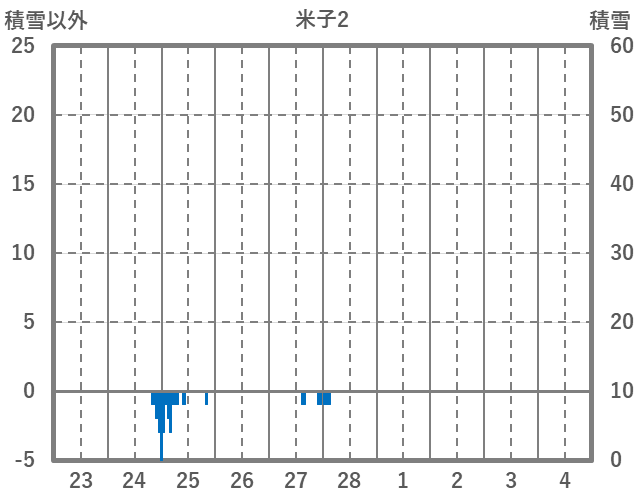 | 日 | 時 | 気温 | 降水 | 風向/風速 | 日照 | 積雪 | 降雪 |