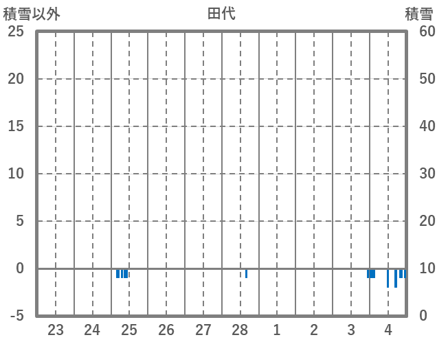 | 日 | 時 | 気温 | 降水 | 風向/風速 | 日照 | 積雪 | 降雪 |