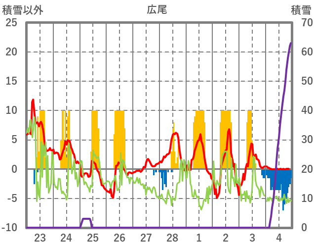 | 日 | 時 | 気温 | 降水 | 風向/風速 | 日照 | 積雪 | 降雪 |