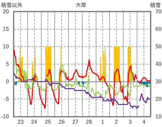 | 日 | 時 | 気温 | 降水 | 風向/風速 | 日照 | 積雪 | 降雪 |