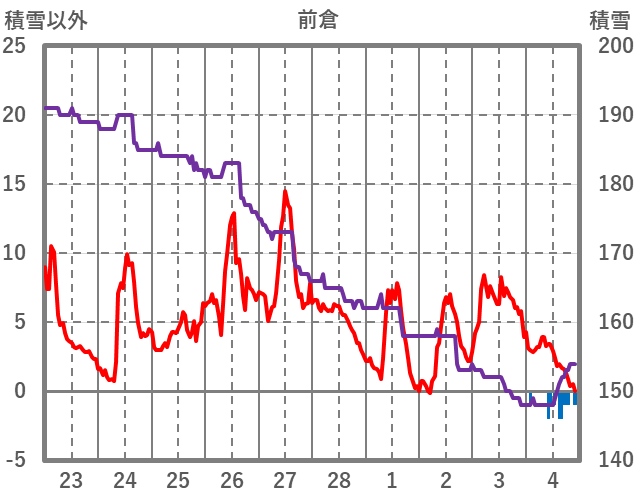 | 日 | 時 | 気温 | 降水 | 風向/風速 | 日照 | 積雪 | 降雪 |