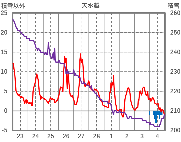| 日 | 時 | 気温 | 降水 | 風向/風速 | 日照 | 積雪 | 降雪 |