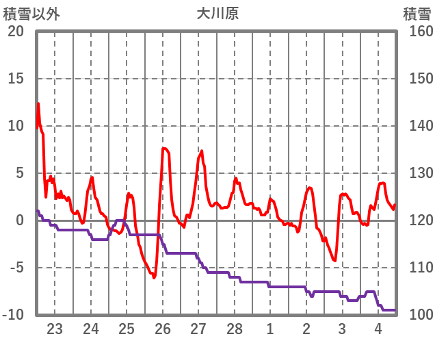 | 日 | 時 | 気温 | 降水 | 風向/風速 | 日照 | 積雪 | 降雪 |