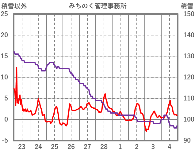 | 日 | 時 | 気温 | 降水 | 風向/風速 | 日照 | 積雪 | 降雪 |
