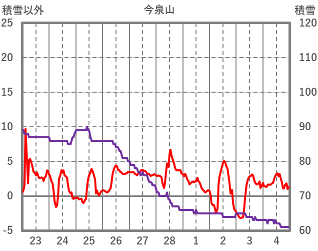 | 日 | 時 | 気温 | 降水 | 風向/風速 | 日照 | 積雪 | 降雪 |