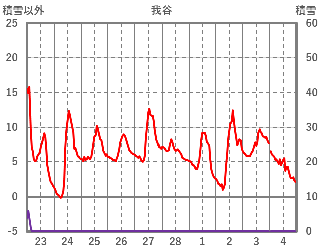 | 日 | 時 | 気温 | 降水 | 風向/風速 | 日照 | 積雪 | 降雪 |