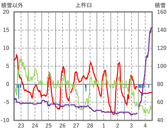 | 日 | 時 | 気温 | 降水 | 風向/風速 | 日照 | 積雪 | 降雪 |