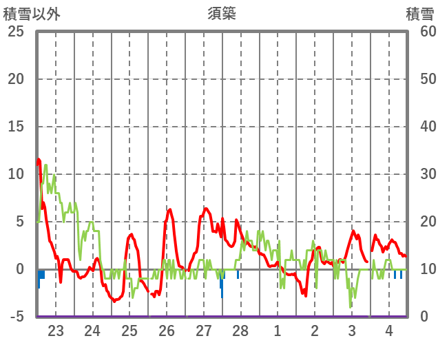 | 日 | 時 | 気温 | 降水 | 風向/風速 | 日照 | 積雪 | 降雪 |