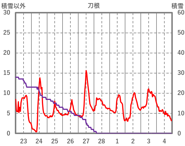 | 日 | 時 | 気温 | 降水 | 風向/風速 | 日照 | 積雪 | 降雪 |