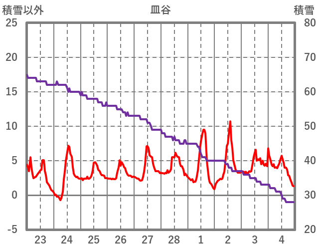 | 日 | 時 | 気温 | 降水 | 風向/風速 | 日照 | 積雪 | 降雪 |