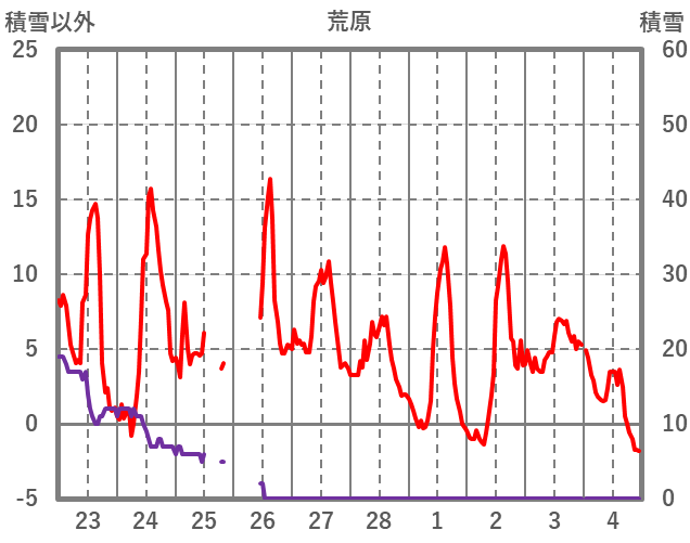 | 日 | 時 | 気温 | 降水 | 風向/風速 | 日照 | 積雪 | 降雪 |