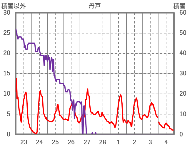 | 日 | 時 | 気温 | 降水 | 風向/風速 | 日照 | 積雪 | 降雪 |