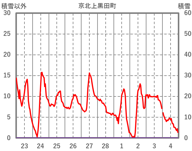| 日 | 時 | 気温 | 降水 | 風向/風速 | 日照 | 積雪 | 降雪 |