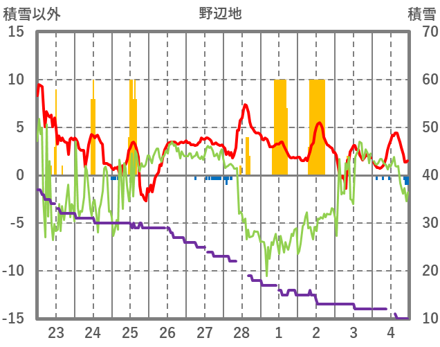 | 日 | 時 | 気温 | 降水 | 風向/風速 | 日照 | 積雪 | 降雪 |