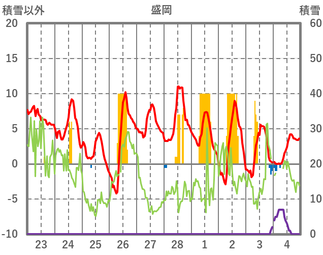 | 日 | 時 | 気温 | 降水 | 風向/風速 | 日照 | 積雪 | 降雪 |