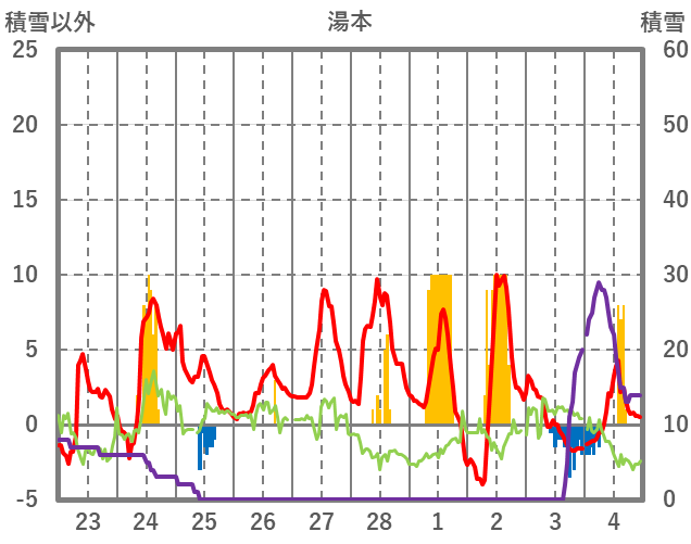 | 日 | 時 | 気温 | 降水 | 風向/風速 | 日照 | 積雪 | 降雪 |