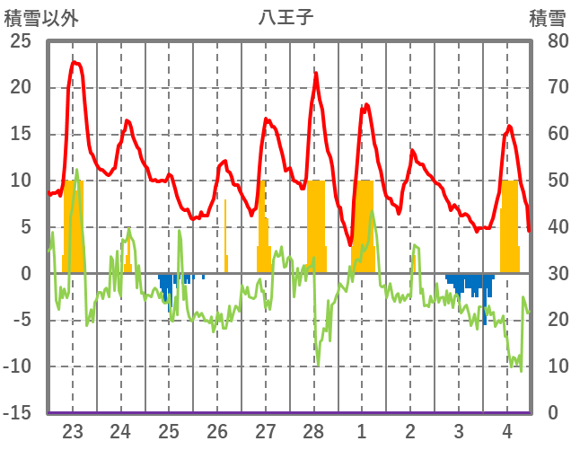 | 日 | 時 | 気温 | 降水 | 風向/風速 | 日照 | 積雪 | 降雪 |