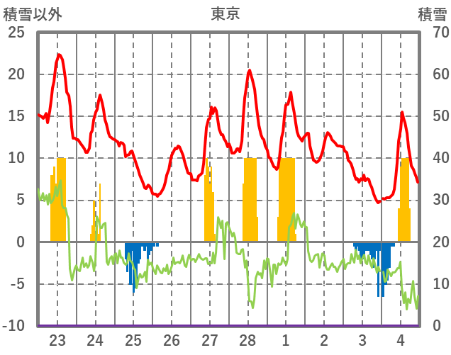 | 日 | 時 | 気温 | 降水 | 風向/風速 | 日照 | 積雪 | 降雪 |