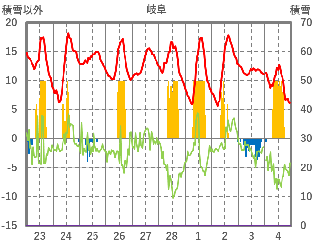 | 日 | 時 | 気温 | 降水 | 風向/風速 | 日照 | 積雪 | 降雪 |