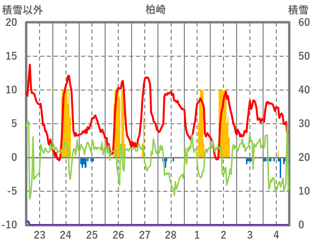 | 日 | 時 | 気温 | 降水 | 風向/風速 | 日照 | 積雪 | 降雪 |