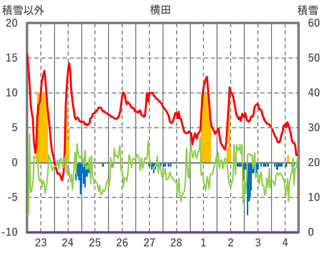 | 日 | 時 | 気温 | 降水 | 風向/風速 | 日照 | 積雪 | 降雪 |
