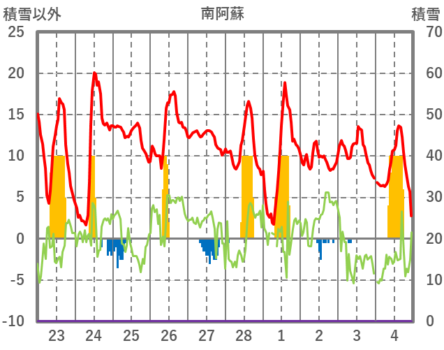 | 日 | 時 | 気温 | 降水 | 風向/風速 | 日照 | 積雪 | 降雪 |
