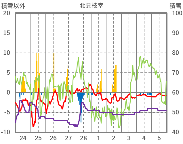 | 日 | 時 | 気温 | 降水 | 風向/風速 | 日照 | 積雪 | 降雪 |