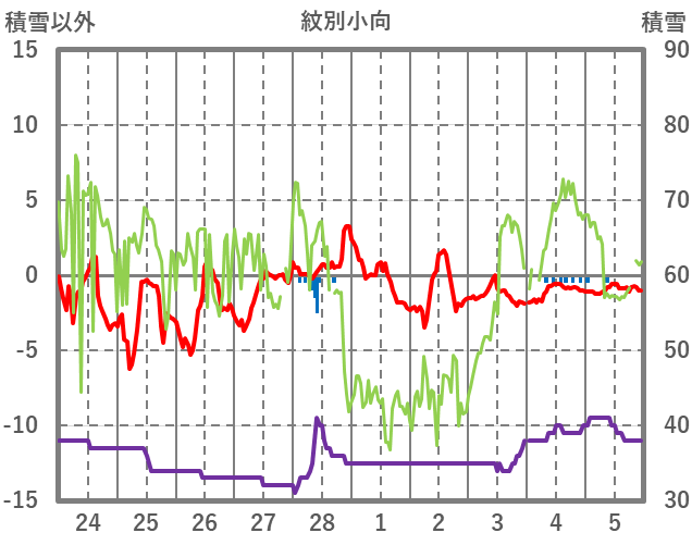 | 日 | 時 | 気温 | 降水 | 風向/風速 | 日照 | 積雪 | 降雪 |