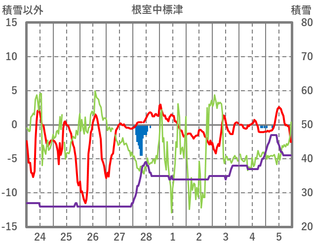 | 日 | 時 | 気温 | 降水 | 風向/風速 | 日照 | 積雪 | 降雪 |