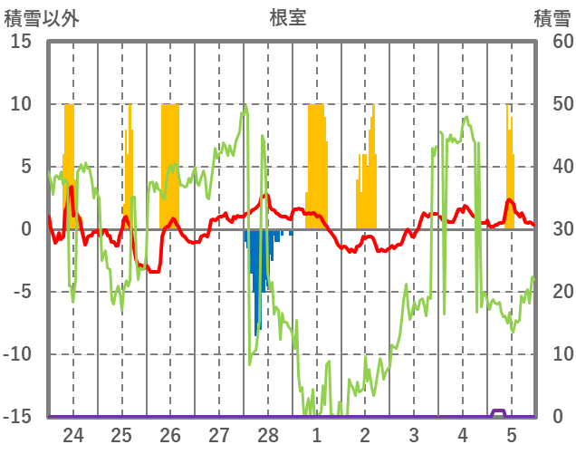 | 日 | 時 | 気温 | 降水 | 風向/風速 | 日照 | 積雪 | 降雪 |