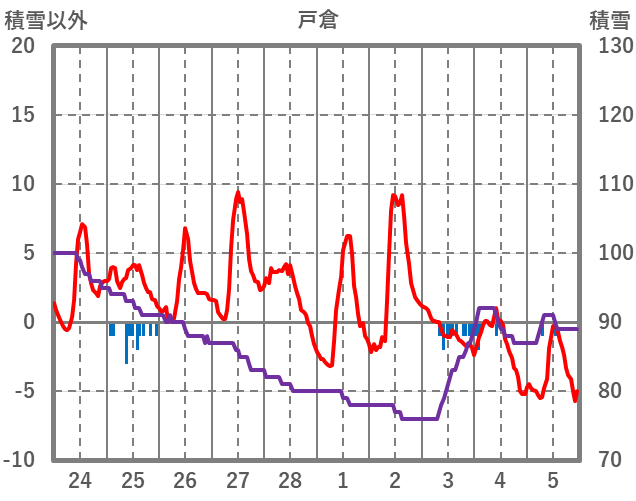 | 日 | 時 | 気温 | 降水 | 風向/風速 | 日照 | 積雪 | 降雪 |