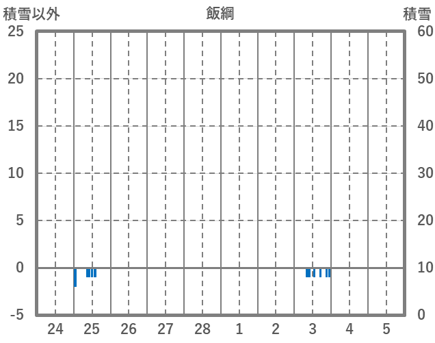 | 日 | 時 | 気温 | 降水 | 風向/風速 | 日照 | 積雪 | 降雪 |