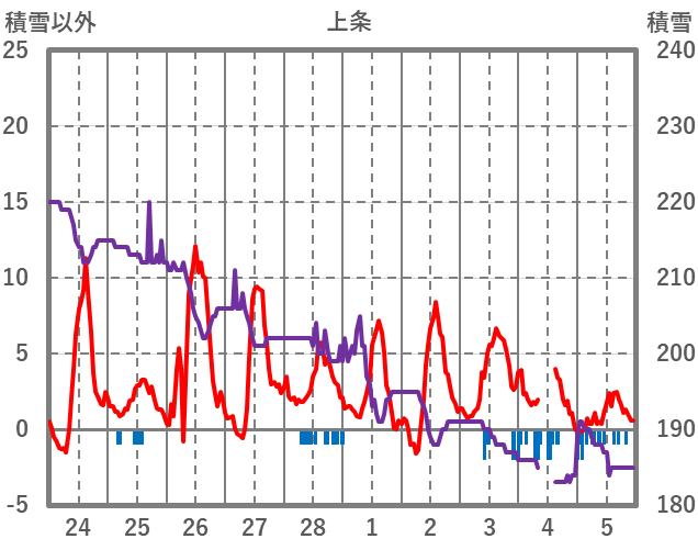 | 日 | 時 | 気温 | 降水 | 風向/風速 | 日照 | 積雪 | 降雪 |