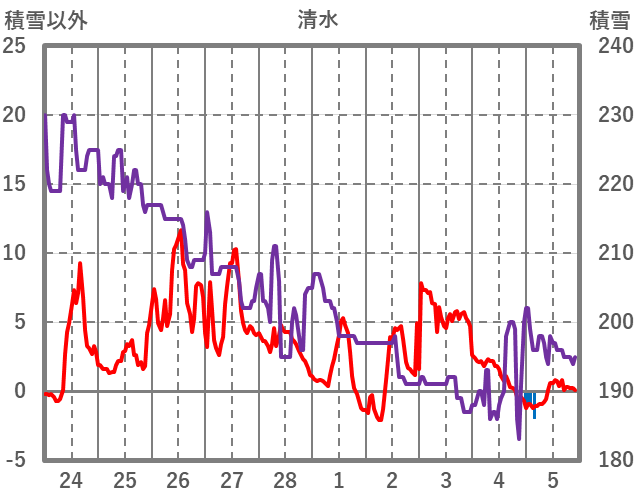 | 日 | 時 | 気温 | 降水 | 風向/風速 | 日照 | 積雪 | 降雪 |