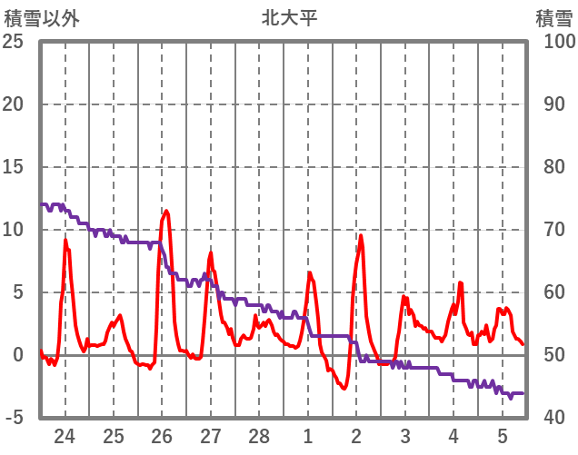 | 日 | 時 | 気温 | 降水 | 風向/風速 | 日照 | 積雪 | 降雪 |