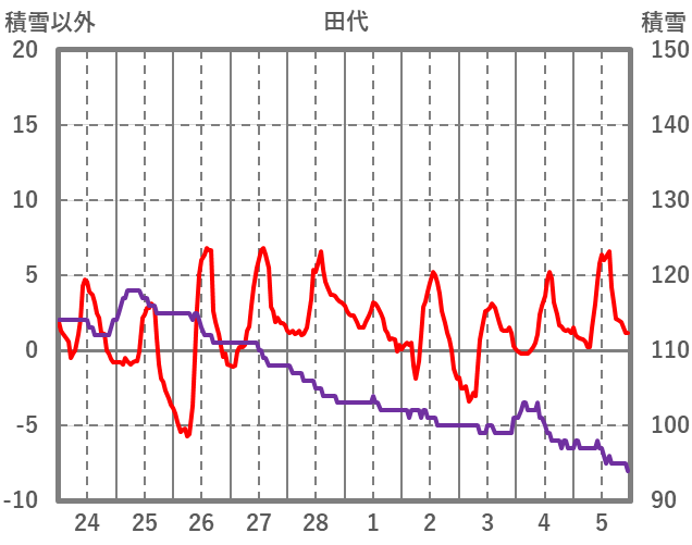 | 日 | 時 | 気温 | 降水 | 風向/風速 | 日照 | 積雪 | 降雪 |