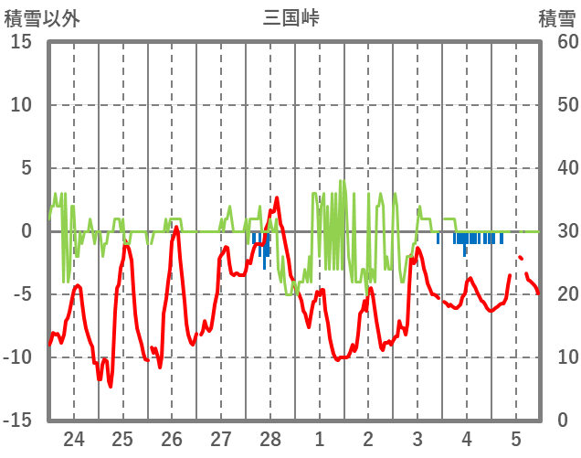 | 日 | 時 | 気温 | 降水 | 風向/風速 | 日照 | 積雪 | 降雪 |