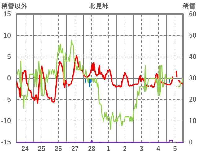| 日 | 時 | 気温 | 降水 | 風向/風速 | 日照 | 積雪 | 降雪 |