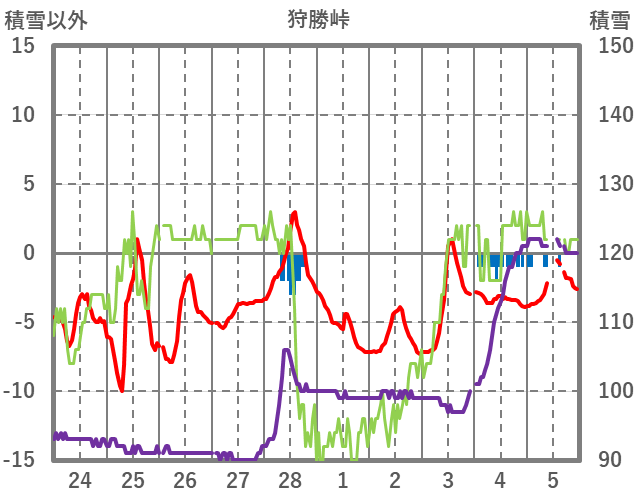 | 日 | 時 | 気温 | 降水 | 風向/風速 | 日照 | 積雪 | 降雪 |