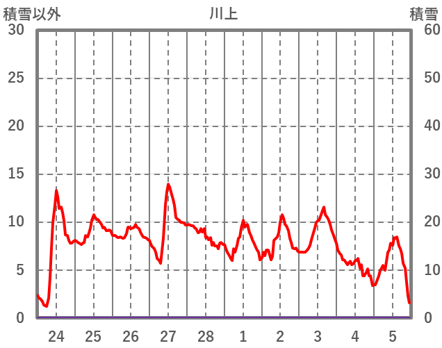 | 日 | 時 | 気温 | 降水 | 風向/風速 | 日照 | 積雪 | 降雪 |