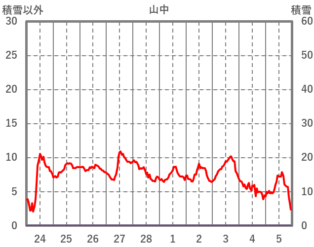 | 日 | 時 | 気温 | 降水 | 風向/風速 | 日照 | 積雪 | 降雪 |